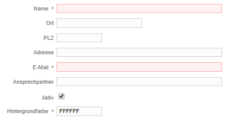 Im sich öffnenden Fenster können Sie nun die Firmendaten eingeben. Die rot hinterlegten Felder sind Pflichtfelder. Die Schaltfläche Aktiv sollten Sie bei der Anlage der Firma angehakt lassen. Im Feld Hintergrundfarbe können Sie eine Farbe bestimmen, die für diese Firma bei der Darstellung der Firma auf der Karte verwendet wird.
