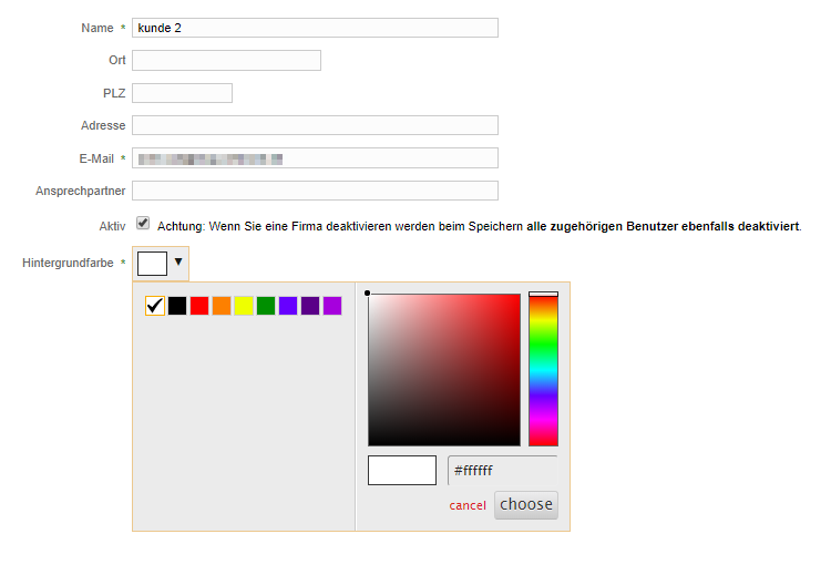 Ein Klick auf die Schaltfläche Hintergrundfarbe öffnet ein Farbauswahlfeld, in dem Sie eine Farbe wählen können, die für die Darstellung der Firma auf Themenkarten verwendet wird.